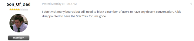“我不怎么逛评论区,但还是得屏蔽掉一些傻缺。不过星际迷航论坛没了倒是有些失望。”