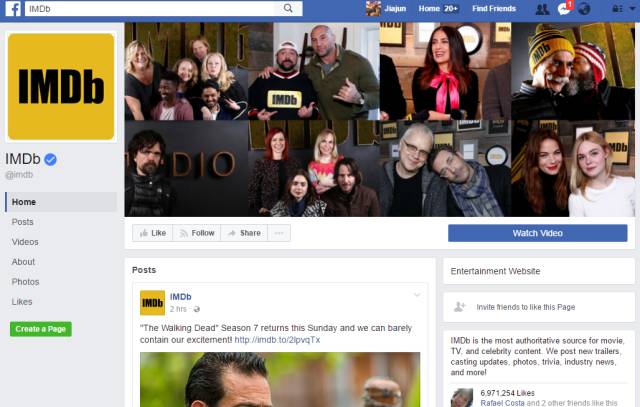 IMDb是全球最受欢迎和权威的电影、电视以及名人的资讯网站,每个月在全球范围内有着2亿5000万的访问频次。为了让用户相互讨论、交流,IMDb一直以来还开设了评论区(message boards)。但随着新媒体的崛起,越来越多的人转移阵地,更多的在Facebook和Twitter上进行评论、互动,其官方账号也有着超过1000万的活跃粉丝。除此之外,还有一些其他的相对更为小众但在国外也很火的社交网站也有着IMDb的一席之地,如Snapchat、Pinterest、Tumblr等等。