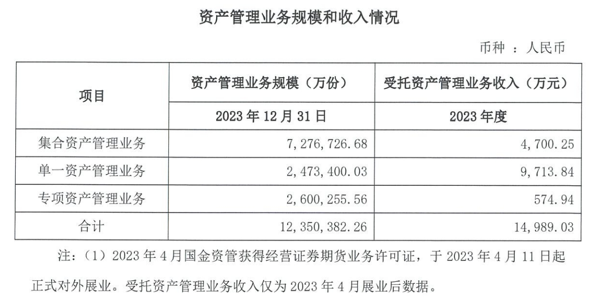 截至2023年12月31日,国金资管总资产12.39亿元,净资产11.64亿元。公司当年实现营业收入1.90亿元,净利润6352.23万元。