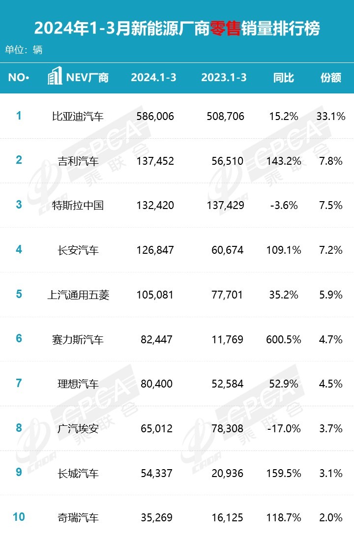 然后我们和同行比,杠杆游戏注意到,按照中国汽车流通协会汽车市场研究分会(简称“乘联会”)的数据统计,2024年一季度我国乘用车累计销量483.2万辆,同比增长13.2%。