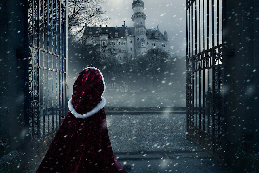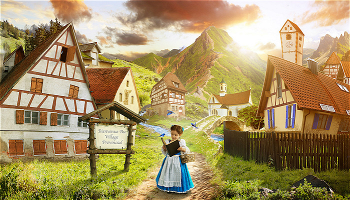 在这一系列图片中,Nellee扮演了贝儿的角色,这是一位法国美女。身着仿公主全套定制礼服——包括蓝色连衣裙、红色斗篷和闪闪发光的金色礼服——这位小女孩儿像变魔法一样被放进了各种电影场景里。为了将每张照片做出故事书般的效果,Rossi选取了最近去欧洲拍摄的照片进行处理。现实中的别墅变成了贝儿最迷人的小镇,而德国的新天鹅城堡(迪士尼乐园里睡美人城堡的原型)则变成了野兽的宫殿。