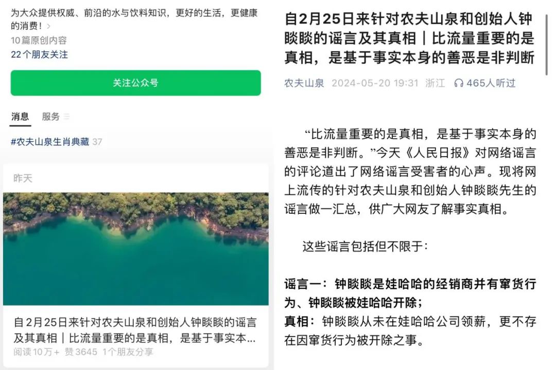 一改沉默态度,农夫山泉对纷繁复杂舆论生态中的不实信息给出了直观且明确的回复。