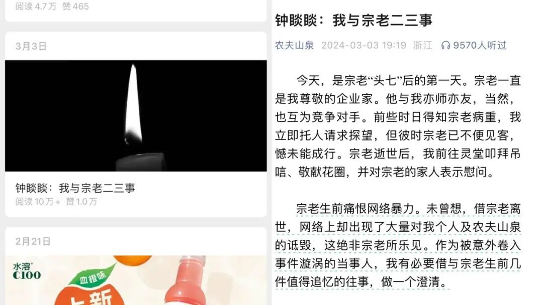 从时间线来看,本次舆论的导火索是钟睒睒与宗庆后的过往“纠纷”。