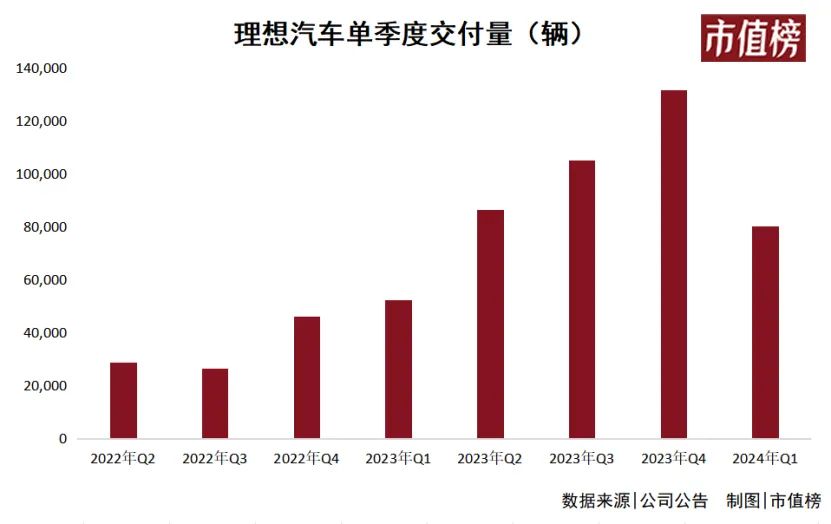 5月20日,理想发布了一份不及预期的一季报,收入256亿元,同比增长36.4%,交付8.04万辆,同比增长52.9%。