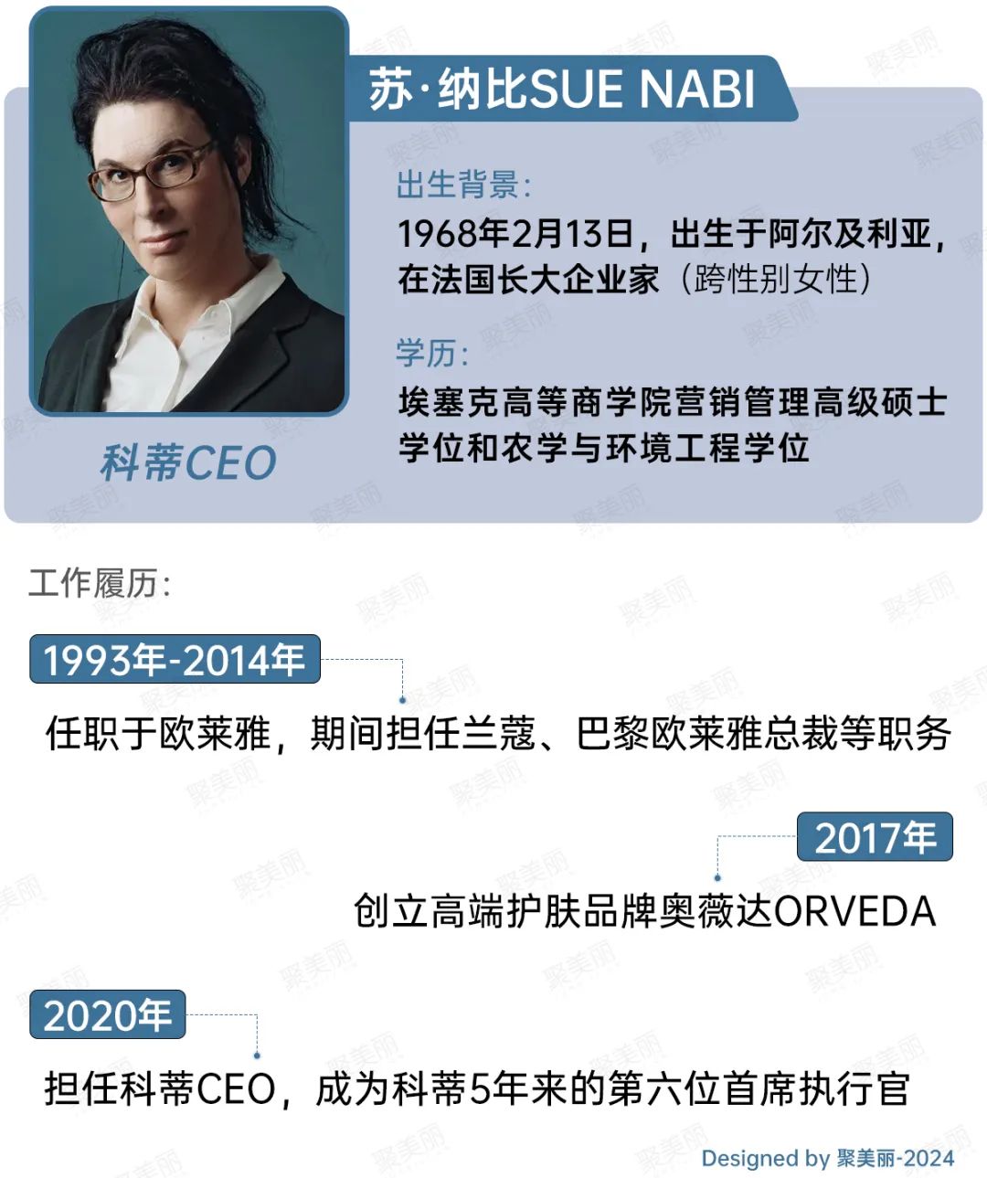 而这背后,也离不开苏·纳比Sue Nabi在顶级商科院校就读的教育经历和欧莱雅任职数十年积累下来的工作经验。