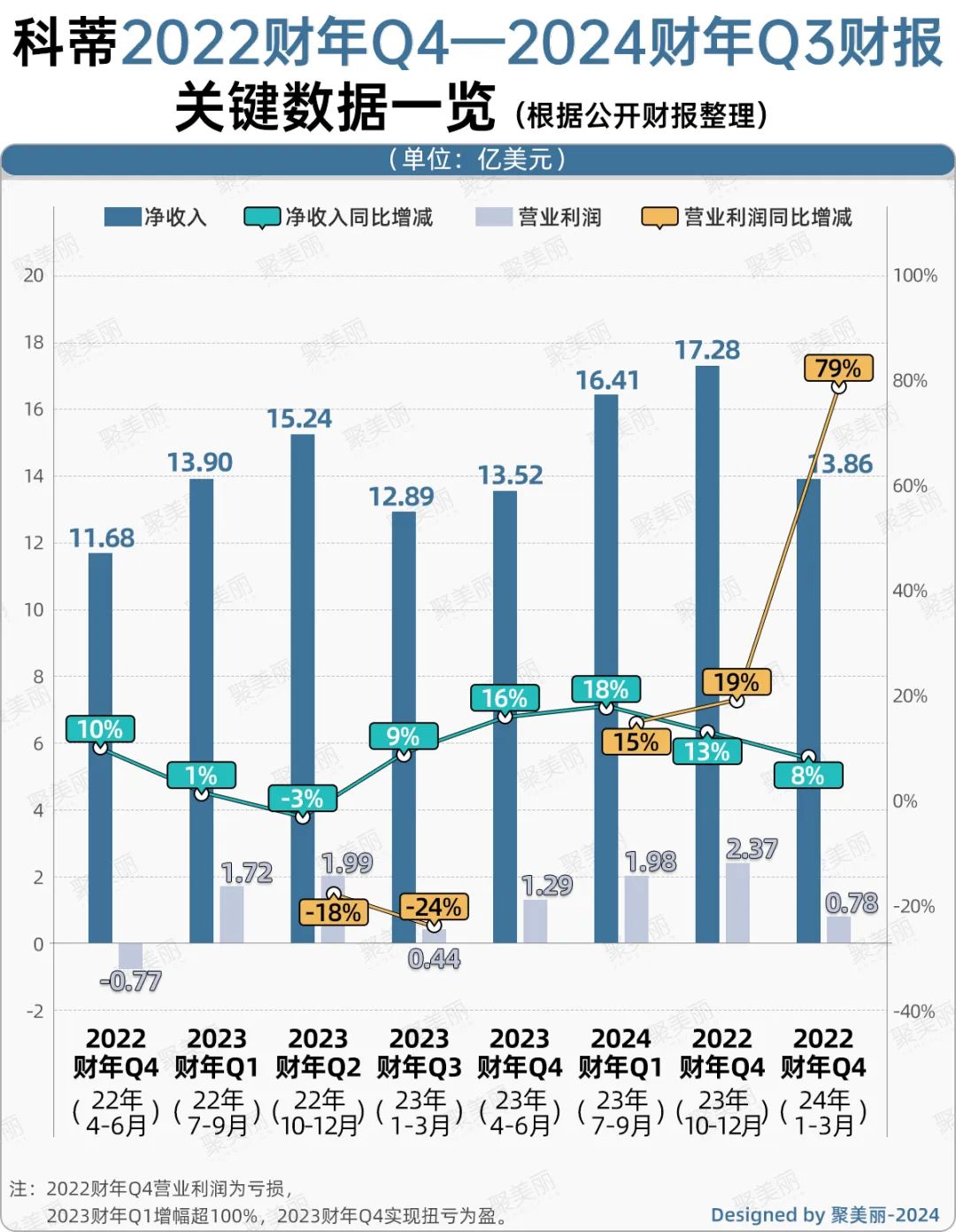 自苏·纳比Sue Nabi上任以来,科蒂的颓势有所缓解,她通过全球扩张、发展多品类(发力护肤)等举措帮助这一百年香水巨头转型,如今已初见成效。从业绩上来看,科蒂近2年多来,仅有2023财年Q2净收入下滑,其余均增收;且自2023财年Q1起,至今已保持7个季度持续盈利。
