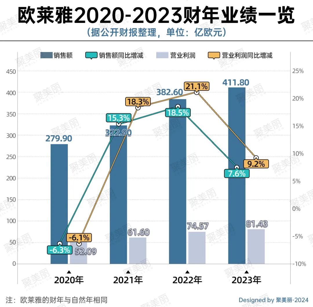 值得一提的是,叶鸿慕Nicolas Hieronimus自就任CEO后,使得欧莱雅走出营利双降困境,并实现销售额较4年前增长近50%、营业利润上涨近60%。