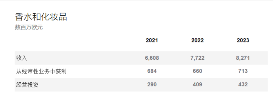 近年来,随着美妆市场发展壮大,LVMH欲加码该赛道,寻求更大的增长空间。在LVMH收购、投资等举措下,LVMH香水和化妆品业务近三财年(按自然年计算业绩)实现稳定增长。