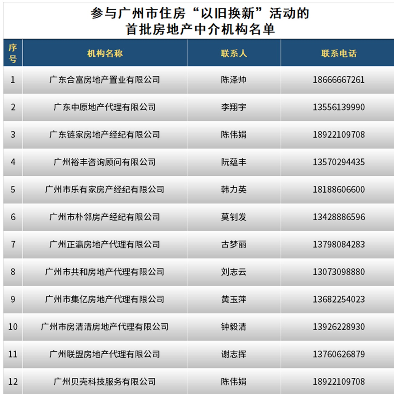 2.参与广州市住房“以旧换新”活动的首批房地产中介机构名单
