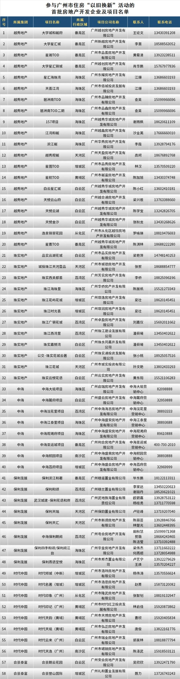 1.参与广州市住房“以旧换新”活动的首批房地产开发企业及项目名单
