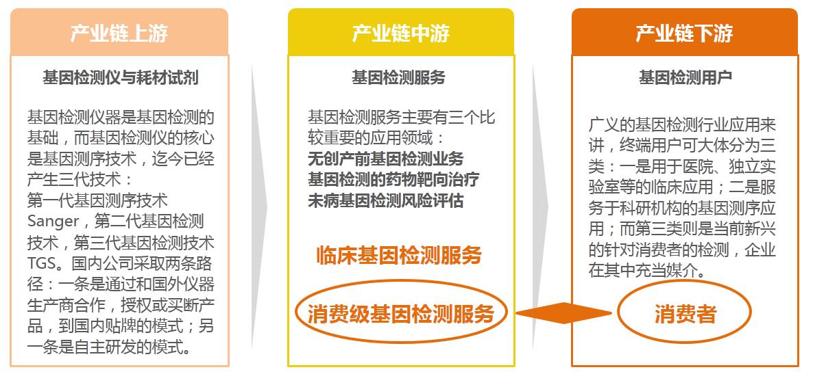 2)产业链结构简明,消费级基因检测处于中游To C部分