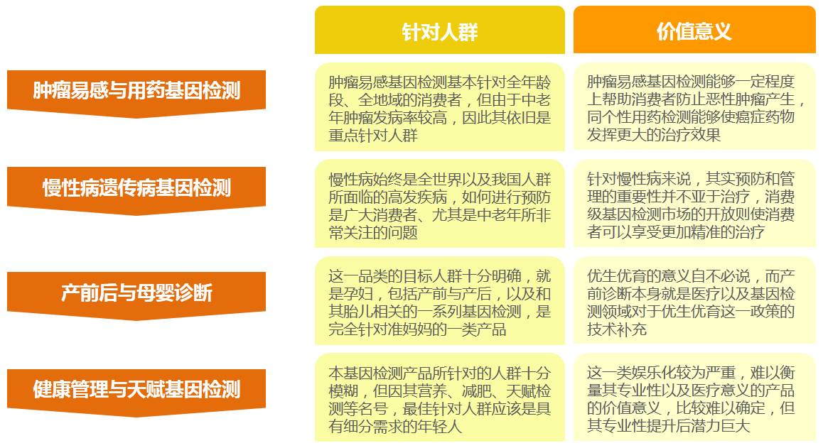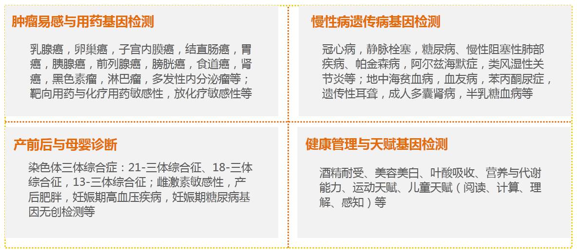 3)四大板块为基因检测产品主流