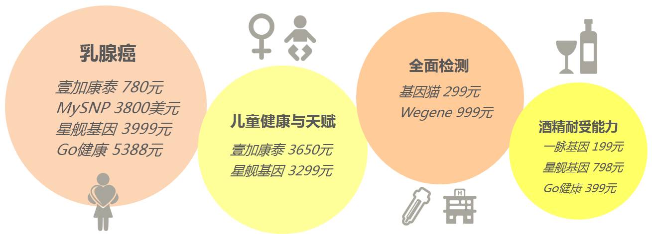 2)国内典型消费级基因检测公司部分产品价格一览