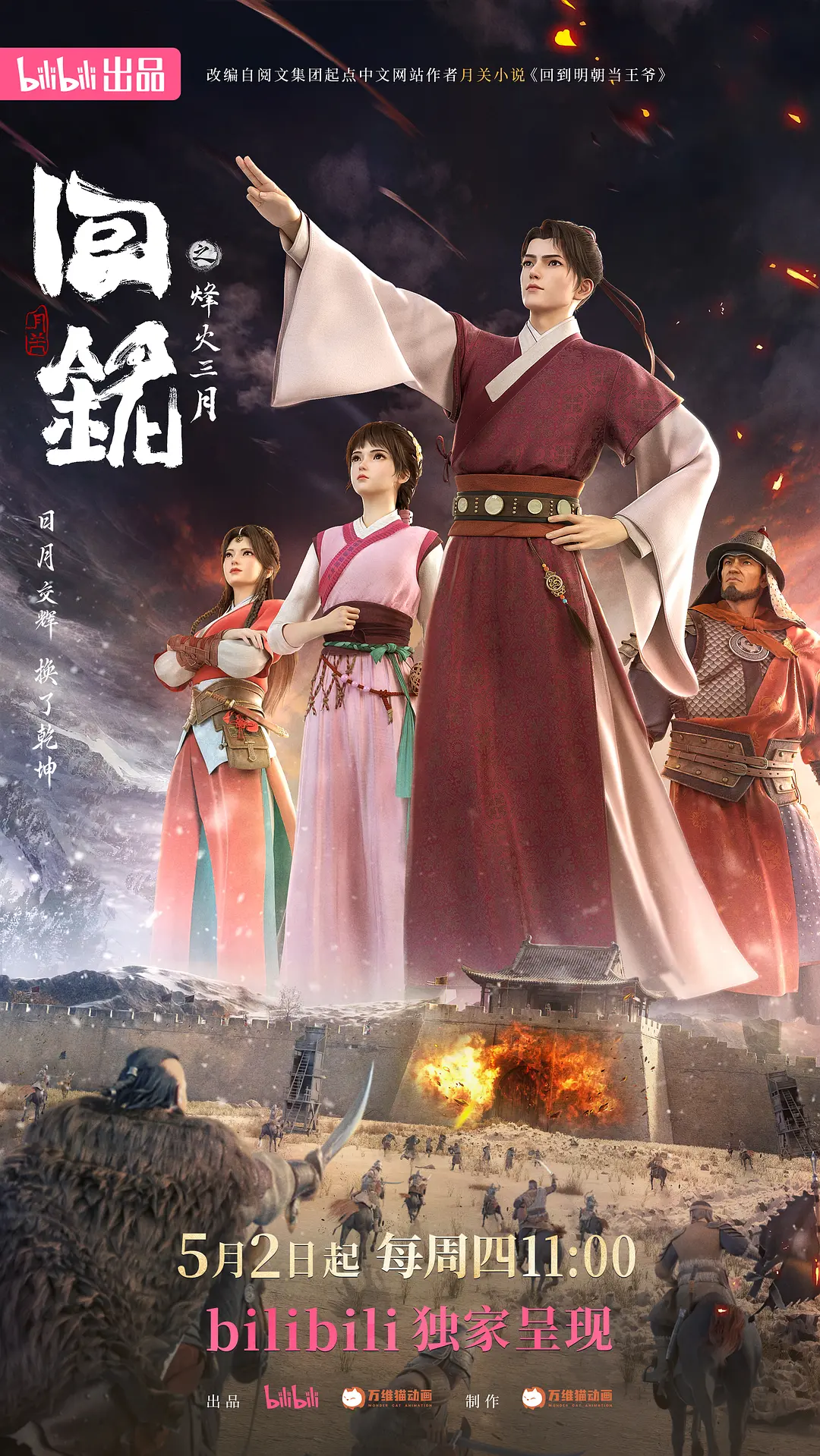 今年5月,B站国创区也上新了一部穿越题材动画《回铭之烽火三月》(以下简称《回铭》)。粗糙的建模已然说明了这部动画经费有限,但论其来头可不小,原作是穿越类网文早期代表作之一《回到明朝当王爷》,制作方是因为《凡人修仙传》备受好评的万维猫动画。自开播以来,《回铭》表现渐入佳境,逐渐成了观众们口中“不靠外在取胜的’实力派”。