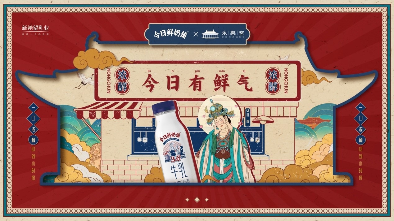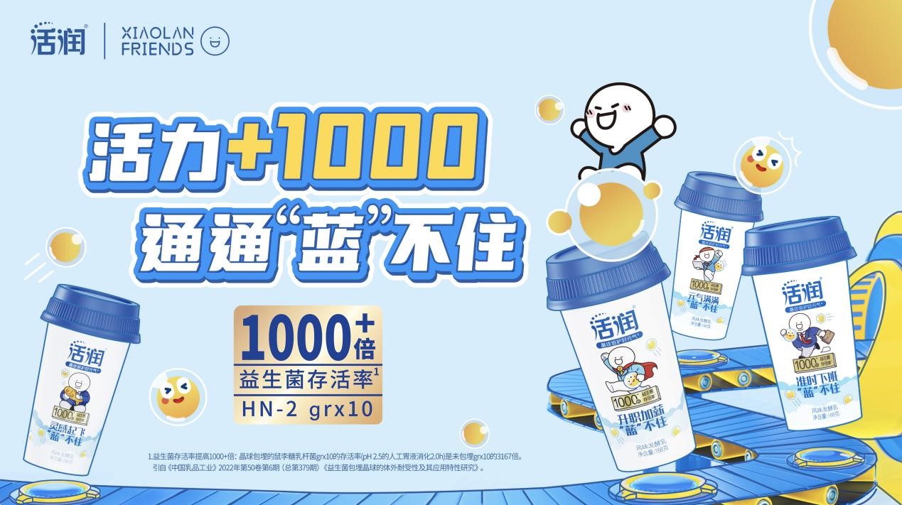 在产品营销方面,新乳业懂得用“心”与消费者沟通,和消费者玩到一起。例如“今日鲜奶铺”联手永乐宫IP,迎合了当下颇为流行的国潮趋势,满足消费者的消费审美;而其旗下“活润”品牌也持续和社交网络上颇具人气的IP小蓝联名,让品牌形象更灵动活泼,也快速占领了年轻消费者的心智。