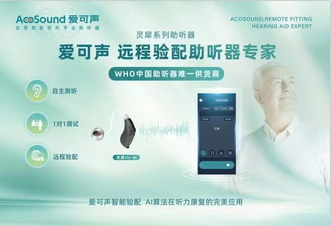 在2020年,主打中高端全数字助听器品牌爱可声亦相继推出了“足不出门 在家验配”的新款助听器灵犀系列。据了解,用户只需下载爱可声APP,链接助听器的蓝牙,便可在手机上调试助听器。此外,爱可声音还配有专业听力师在线一对一服务,用户可随时申请专家通过电脑验配软件进行远程调试。