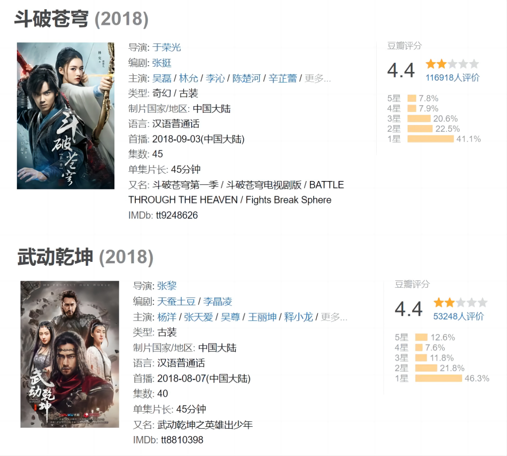 找来杨洋、吴磊硬上起点主站白金作家的大IP《斗破苍穹》《武动乾坤》口碑扑街,收视也差强人意,投资人对“流量+IP”这套万金油组合不再盲目信任;