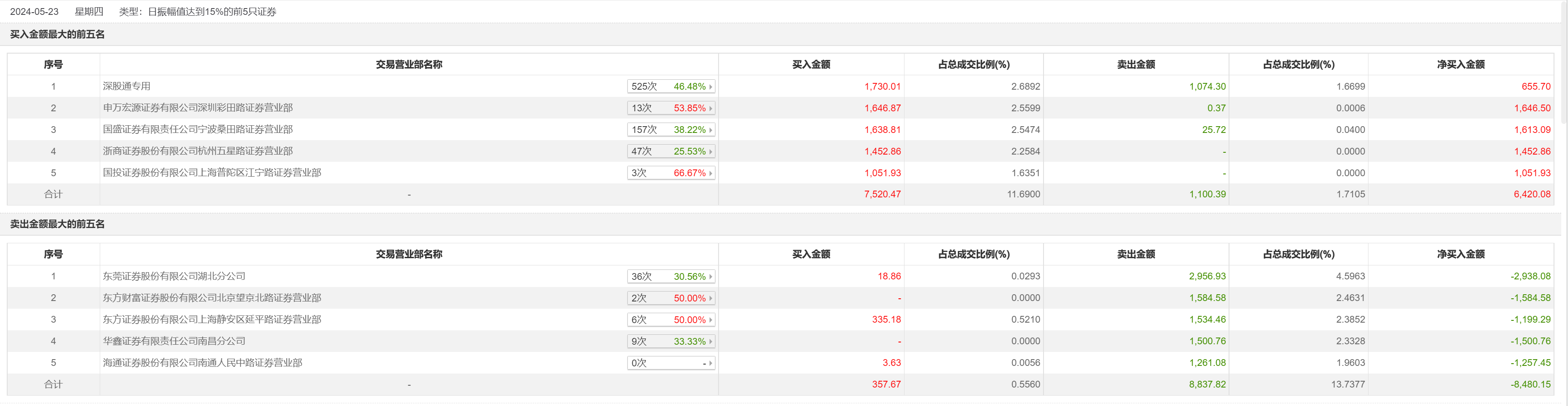 5月23日,汇绿生态今日涨3.45%,龙虎榜数据显示,上榜营业部席位全天成交1.78亿元,占当日总成交金额比例为27.69%。其中,买入金额为7878.14万元,卖出金额为9938.21万元,合计净卖出2060.07万元。