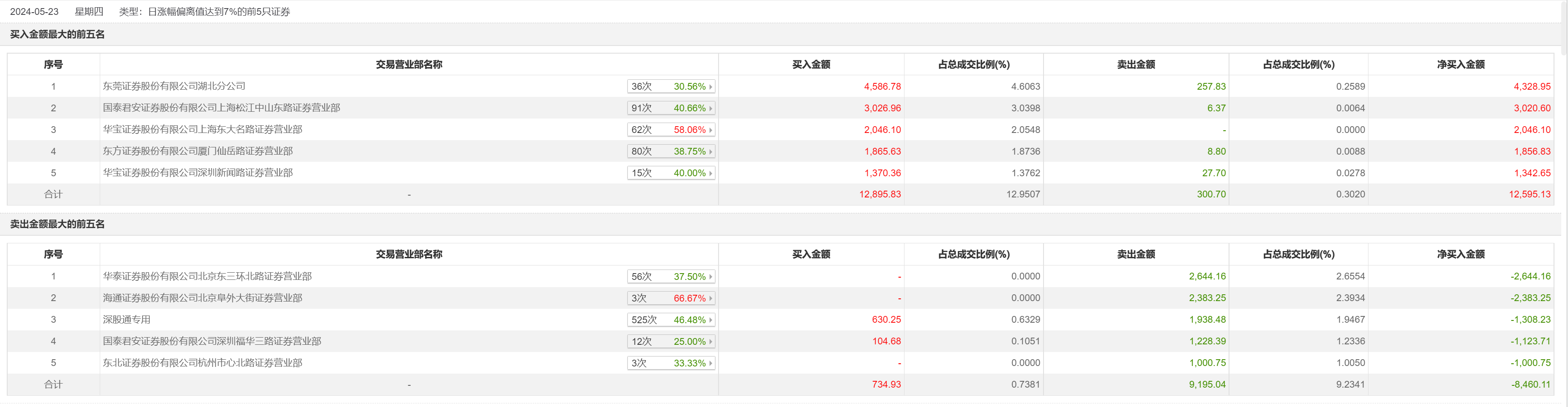 具体来看,知名游资现身龙虎榜,东莞证券湖北分公司、国泰君安证券上海松江中山东路证券营业部分别买入4586.78万元、3026.96万元;华泰证券北京东三环北路证券营业部、著名刺客(海通证券北京阜外大街证券营业部)分别卖出2644.16万元、2383.25万元。