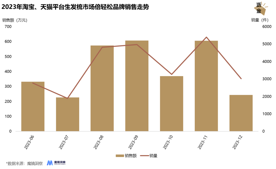2023年淘宝、天猫平台生发梳市场倍轻松品牌销售走势