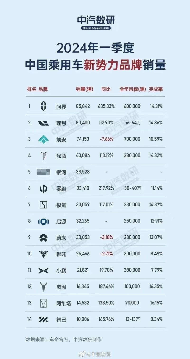 从市场份额来看,小鹏面临的竞争压力不小。据中汽数研统计,2024年一季度新势力品牌销量中,小鹏位居第11位,情况并不乐观。