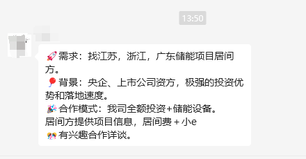 新能源产业家留意到,在行业社群里,经常有人喊话寻找项目居间人。