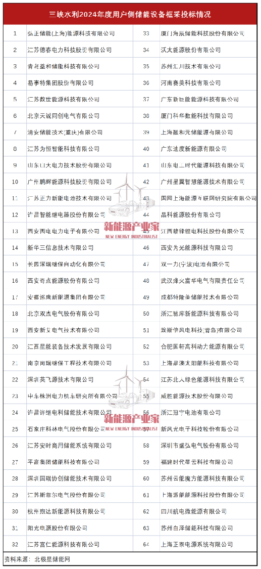 不久前,三峡水利2024年度用户侧储能设备框架协议采购,总共有64家企业投标。