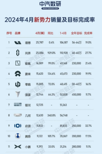 小鹏汽车曾定下28万辆的年度销售目标,以此计算,截至4月底,小鹏汽车的目标达成率仅为11.1%,达成率排名上也在10名以外。
