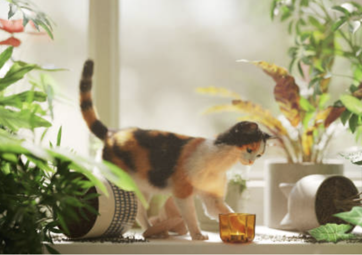 为了让大家更好理解空间智能这一概念,李飞飞在演讲中借用了一张极具启发性的图片:一只猫正伸出爪子,意图将玻璃杯推向桌子的边缘。