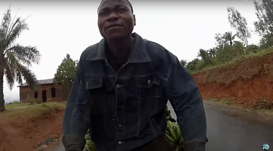 奥德彪更重要的工作是拉香蕉——字面意义上的拉。他拥有一台破旧、生锈、很可能来自于中国的自行车,能够以最高 70 公里的时速穿行在山间公路上,比环法自行车手们平均时速还要高。