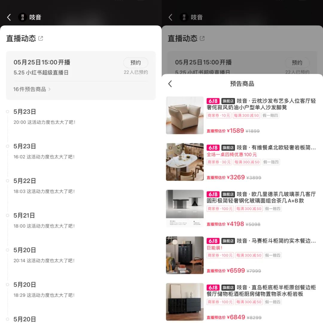 当下的电商格局中,小红书和视频号最大的共性就是入局晚、体量尚小、亟待打造标杆,对于二者来说,「立」是关键;但对于阿里、京东等老牌电商来说,「破」才是关键,所以取消预售机制,主打「现货开卖」成了后者的最大变量。而且今年 618 的战线格外长,老牌电商纷纷把第一拨大促提前到 5 月 20 日。