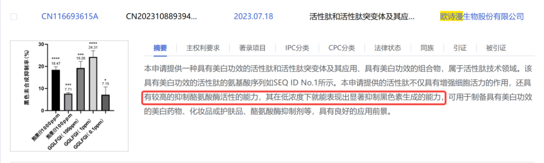 今年4月,欧诗漫发布的系列新品中就添加了珍白因Pro,能够通过抑制络氨酸酶活性来切断黑色素信号,从而更早抑制黑色素形成。