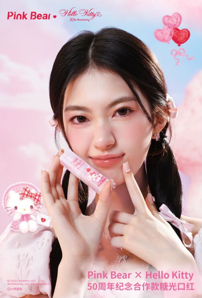 PinkBear皮可熊与三丽鸥家族成员Hello Kitty联手推出全新Hello Kitty 50周年纪念合作款系列,将少女心的美好以彩妆形式完美呈现。
