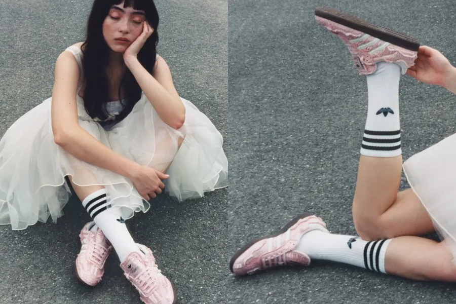 此外,CAROLINE HU X ADIDAS SAMBA更是打破了球鞋的既定印象,它创新的乘载了娃娃鞋、芭蕾舞鞋独有的天真浪漫,却也精巧拿捏著少女的叛逆个性,在穿搭上可以是率性丹宁、贴身皮裙这类的反差对比,亦可是长版洋装、纱裙或蓬裙的俏丽烘托,更最极端的风格间灵活跳跃。