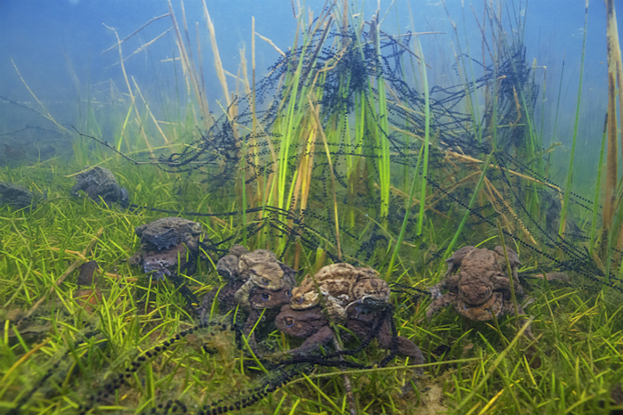 “很多年了,我们一直在追踪蒂伦豪特(比利时)的淡水湖中交配的蟾蜍。通常在三四月份,气温在8度,气候潮湿的时候。蟾蜍就在湖水的浅水区,因此我们可以结合自然光和闪光灯拍照。”