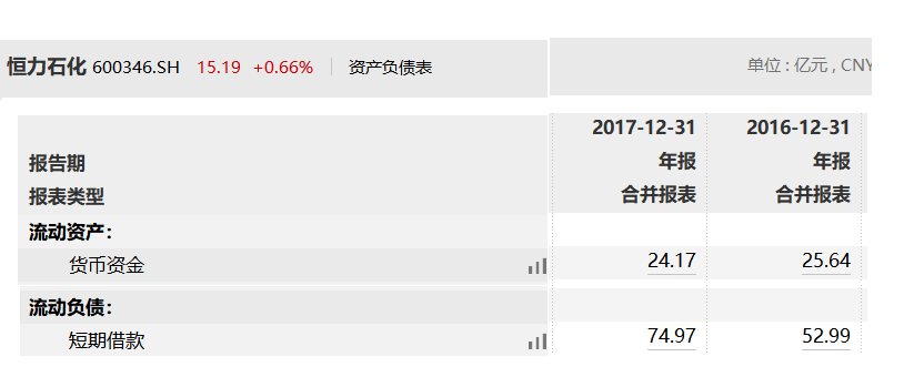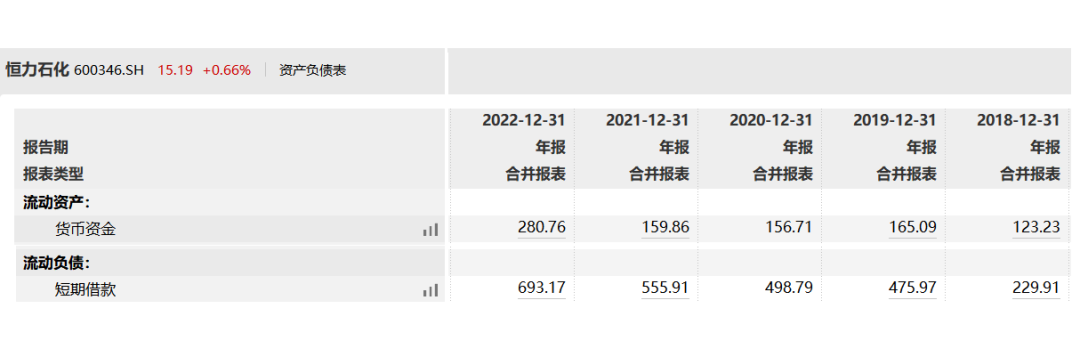 2018年,恒力石化的货币资金首次突破百亿,达到123.23亿元。而此时,企业的短期借款已经飙涨到了229.91亿元。