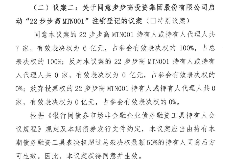5月20日,步步高集团宣称因经营情况下滑,流动性紧张无法以现金方式偿付“22步步高MTN001”,拟采用其他方式偿付,因此会在5月22日15:30召开第二次持有人会议。如今注销的正是这笔中期票据。