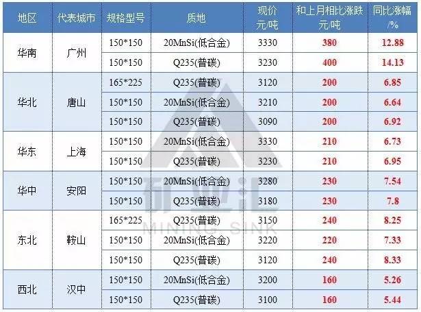 当然不只钢坯价格上涨,其他钢材包括建材螺纹钢、板材和型材都在涨价。