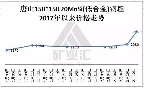 以唐山150*150 20MnSi(低合金)钢坯为例,2017年以来,钢坯价格保持稳步前进,最近几天钢坯价格突然上涨200多元/吨。