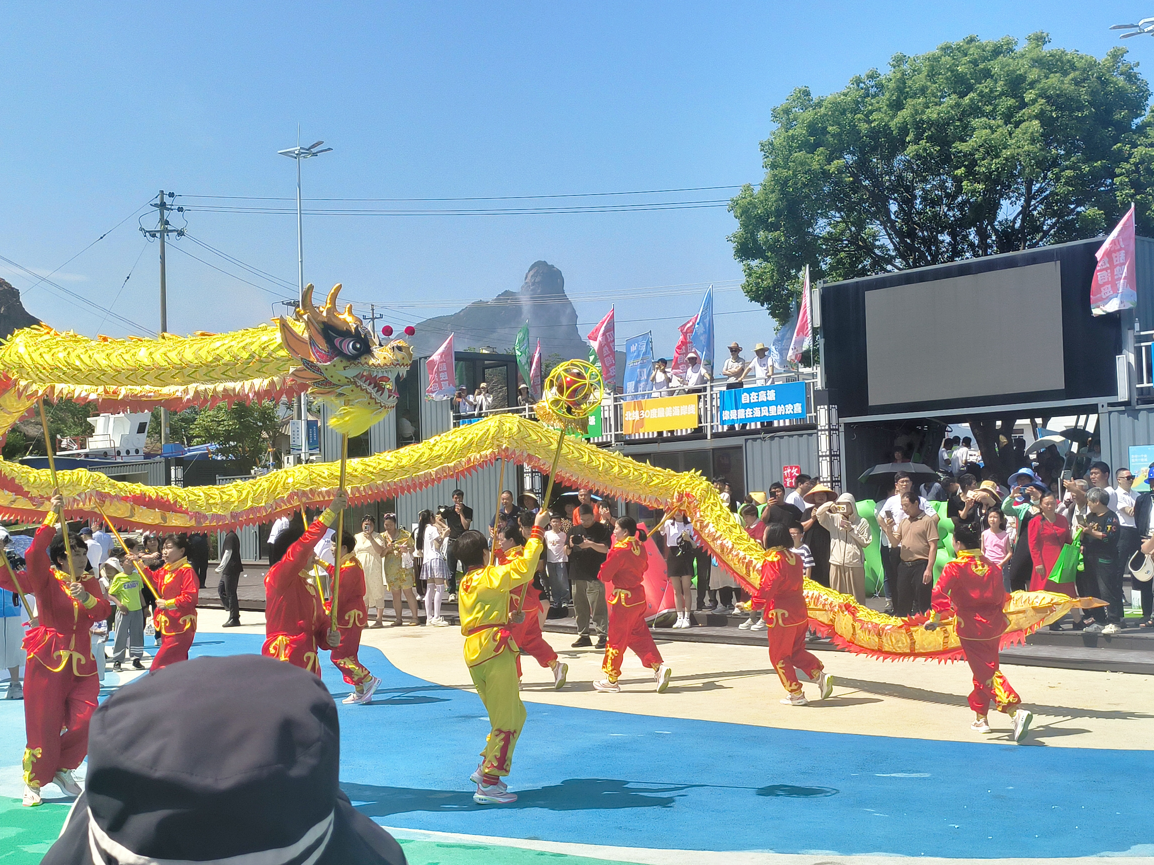 此外,“自在高塘共富市集”办得热火朝天。“这次西瓜节是我们高塘的一个很好的文旅宣传活动,我觉得,借着活动摆摊的机会,既可以宣传传统非遗文化‘漆扇’,又可以满足我这个大龄文艺女青年在乡村穿汉服的愿望,很圆满。”非遗漆扇摊主陈巧玲表示。“吃瓜”市集现场热闹非凡,高塘西瓜、海鸭蛋、本土粮油、花岙岛文创产品等特色农副产品、文创产品琳琅满目,吸引了众多游客驻足选购。高塘岛乡农合联理事长徐挺为共富市集摊主代表尤飞龙授牌,标志着这一创新平台正式投入使用。这是一个集农产品展示、销售、交流于一体的综合性平台,旨在通过“共享、共赢、共富”的理念推动海岛经济的共同发展。同时,西瓜游园会和首届西瓜午宴等丰富多彩的活动也让游客们深刻体验到了高塘岛乡独特的海岛风情和西瓜文化的魅力。