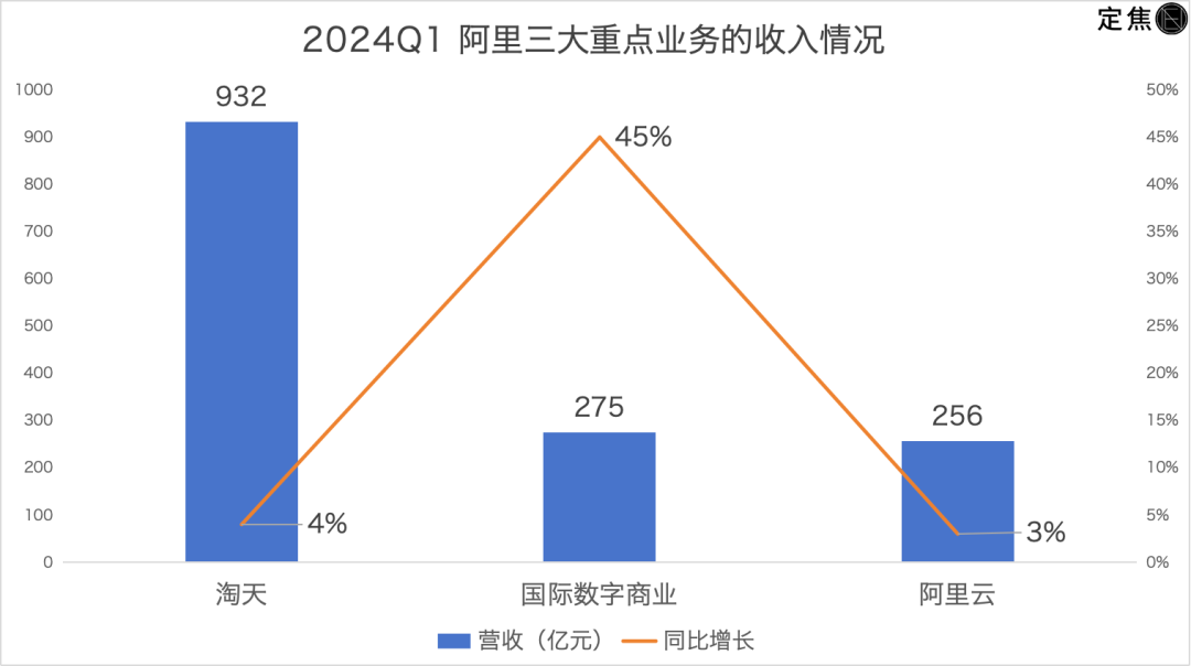 阿里的三大重点业务是淘天、国际数字商业和阿里云。三线同时加大投入,换来了不同程度的增长,但也没能避免对利润的进一步侵蚀。