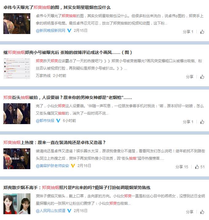 这件事的导火索,是前两天郑爽被卓伟爆出的抽烟事件。