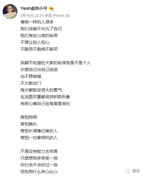 尽管她小号昨天更新的最后一条微博说自己一直“不敢哭不敢闹不敢笑”。