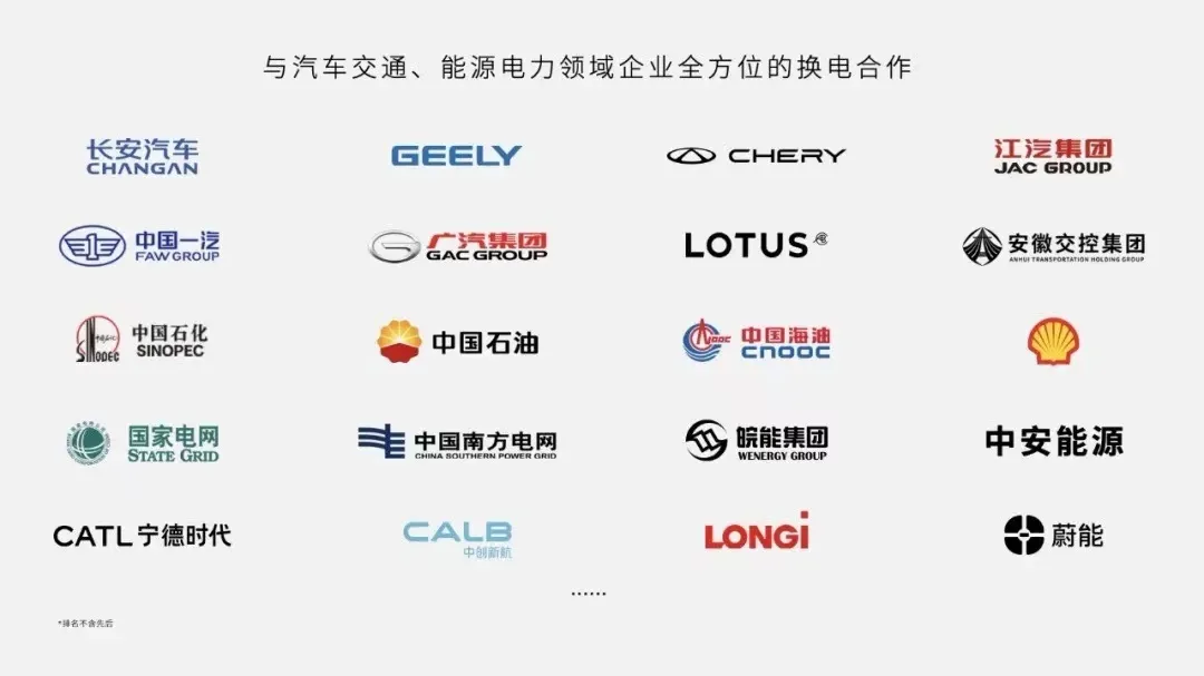 此后一发不可收拾,半年的时间,除了长安汽车,吉利、奇瑞、江汽集团、路特斯、广汽和中国一汽先后加入了蔚来的“换电联盟”。