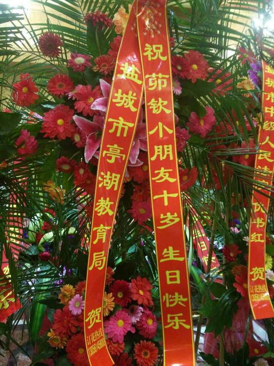 【江苏】十岁男童生日宴出现多个机关署名花篮 实为撑面子冒名