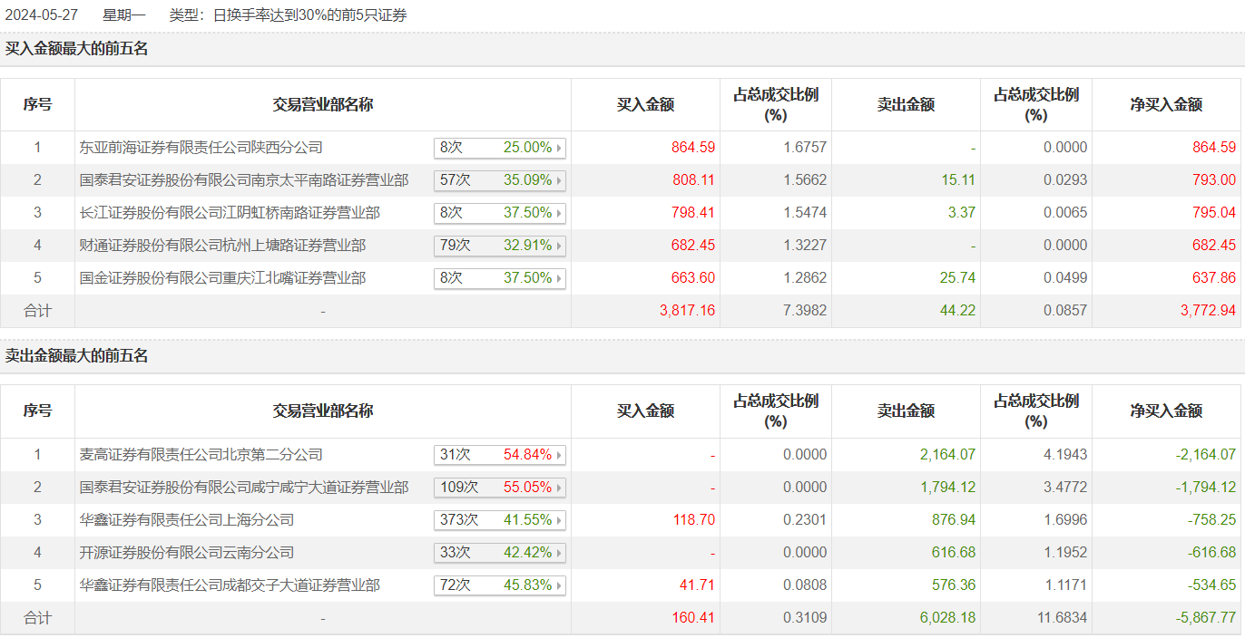 具体来看,知名游资现身龙虎榜,东亚前海证券陕西分公司、作手新一(国泰君安证券南京太平南路证券营业部)分别买入864.59万元、808.11万元;麦高证券北京第二分公司、国泰君安证券咸宁咸宁大道证券营业部分别卖出2164.07万元、1794.12万元。