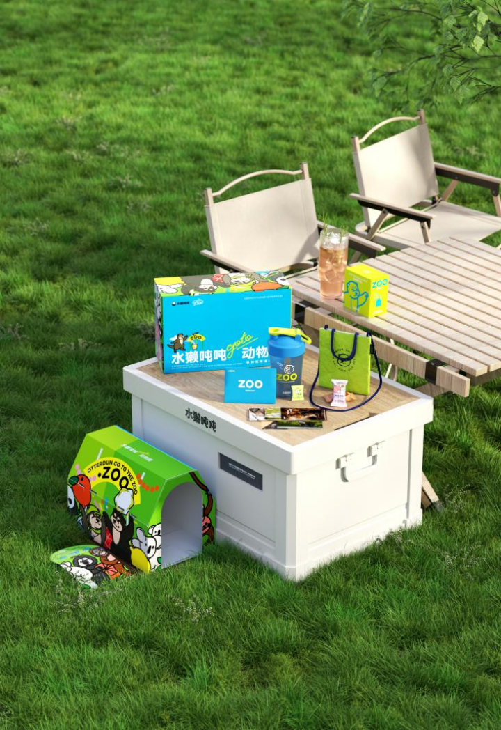 近日,水獭吨吨推出「goto动物园」果茶礼盒,并且认养广州动物园水獭壮壮。礼盒包含乌龙桃桃果茶、茉莉西柚果茶、茉莉花手冲茶以及动物园主题周边,包括摇摇杯、游园小挎包、水獭明信片。值得注意的是,该礼盒外包装以代表地球的蓝色为基调,画面围绕水獭和其他动物展开,可变成收纳小屋循环使用。 (品牌官方)
