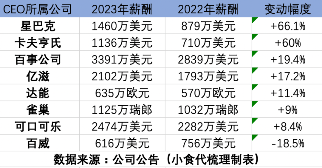 事实上,食品饮料500强CEO普遍涨工资的情况,与不同行业的代表性企业行情保持一致。