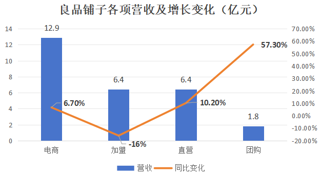 2024年一季度,良品铺子各项业务中,电商实现收入12.9亿元(同比增长6.7%)、直营营收6.4亿元(同比增长10.2%)、团购营收1.8亿元(同比增长57.3%)。