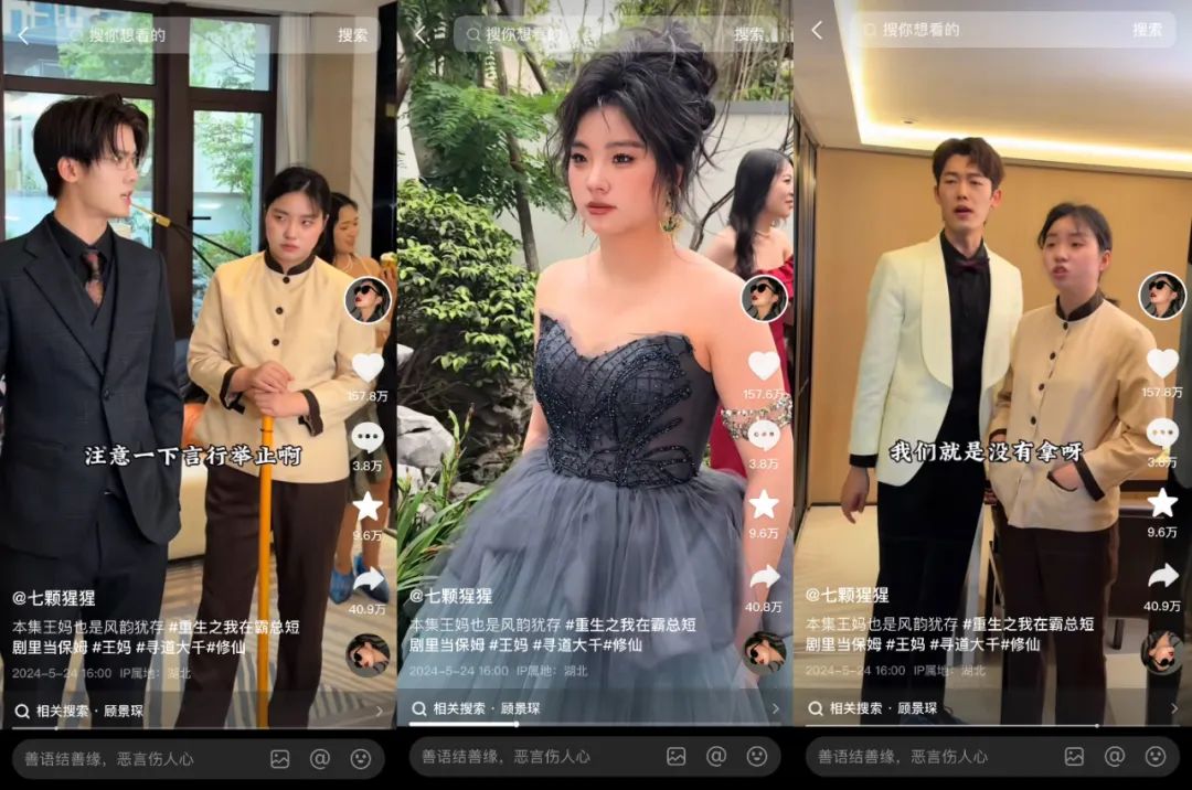 此前@七颗猩猩在《重生之我在霸总短剧当保姆》中,塑造出了一个敢于反抗、敢于吐槽的打工人形象——“王妈”,随着该系列短视频的走红,“王妈”的形象也深入人心,成为“互联网打工人嘴替”。